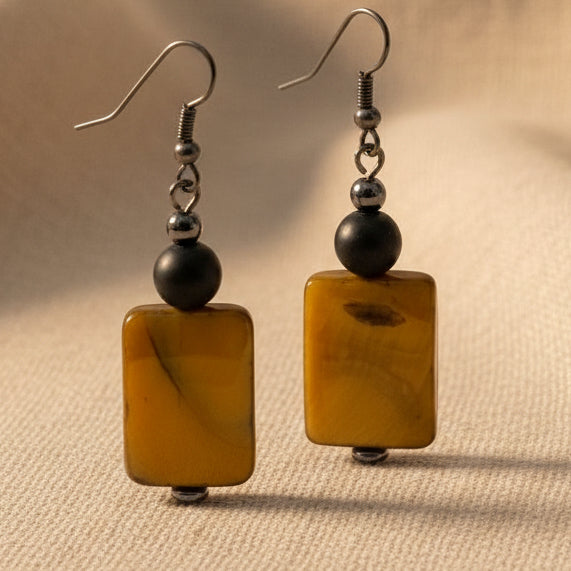 The Essence Earring Collection - "Golden Shell Matte Onyx Earrings"